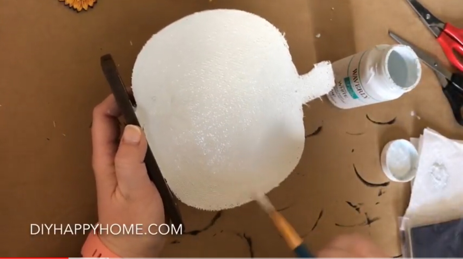 I then painted the front of the pumpkin with Waverly white chalk paint.
