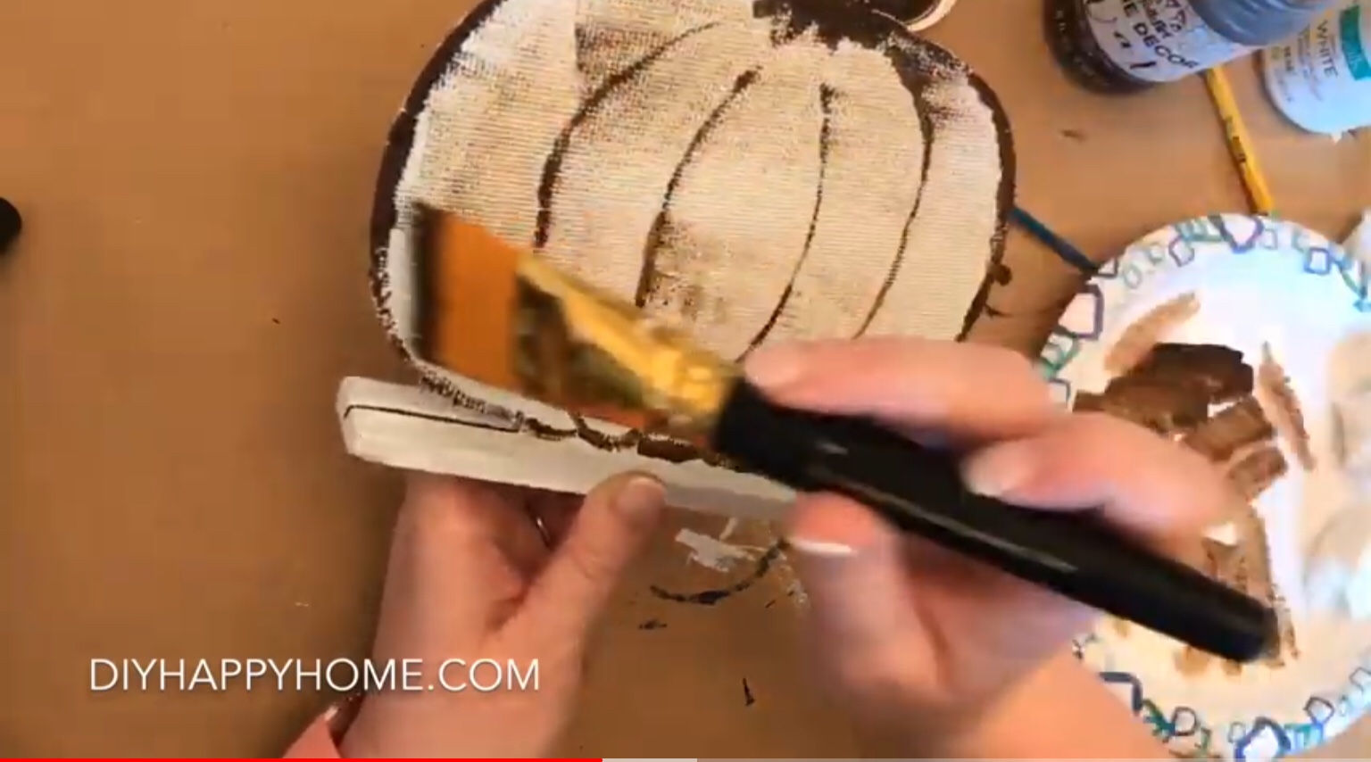 I decided a lot of the grooves I had painted on the pumpkin got too faded when I antiqued it, so I quickly painted the lines again. Live and learn, LOL!