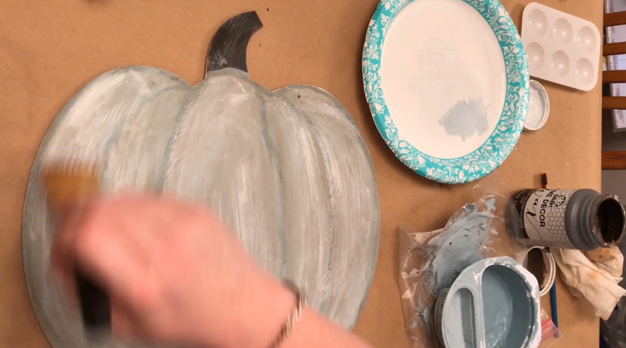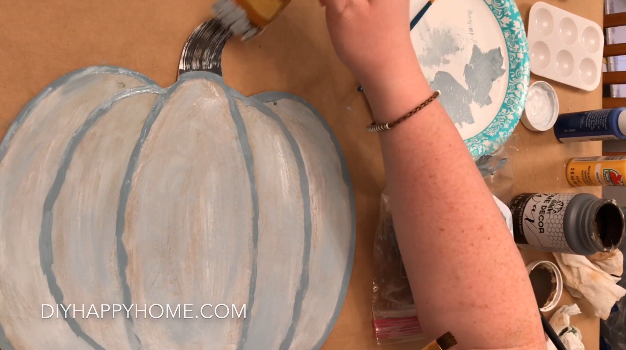 Next, I dry brushed the pumpkin with Waverly white chalk paint.