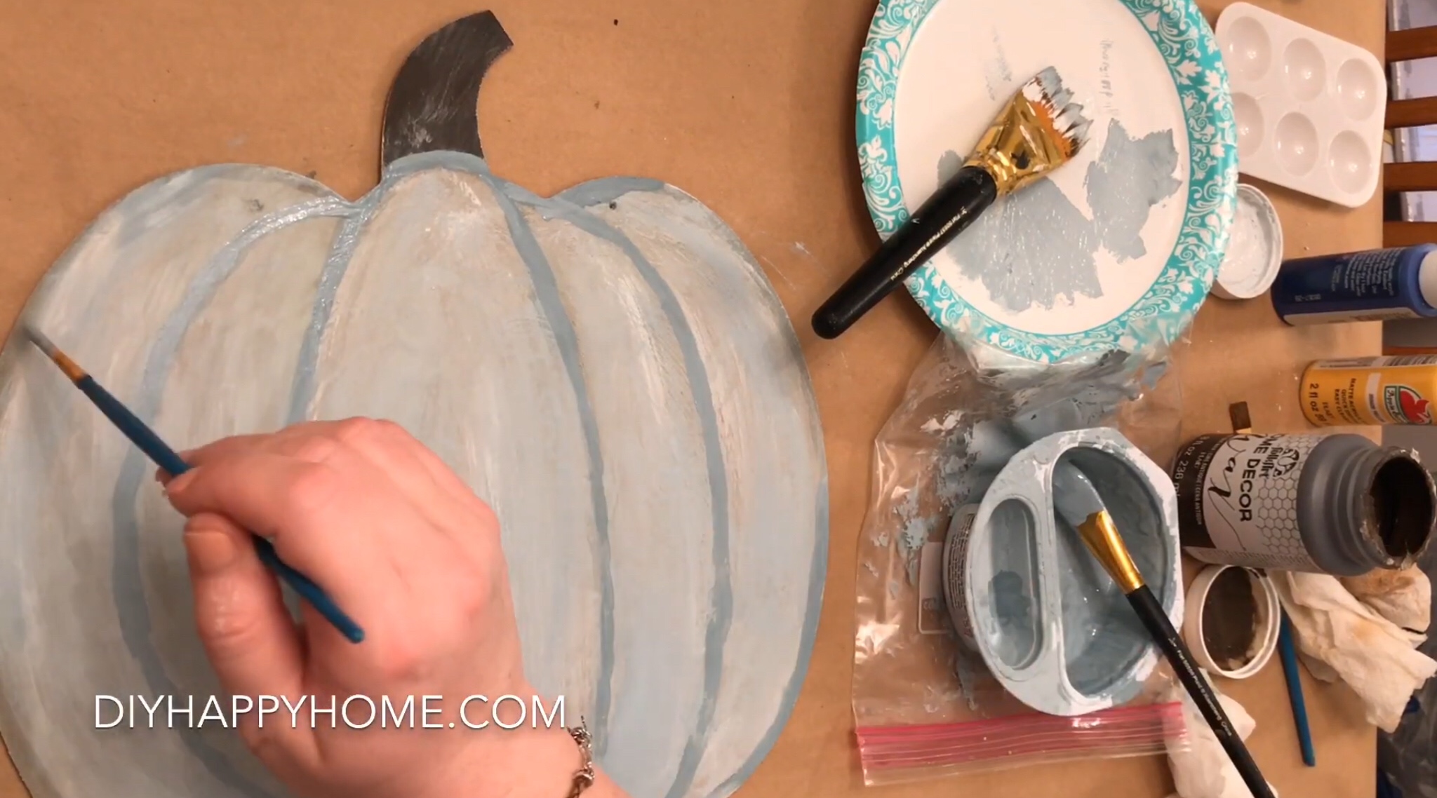 Then, I outlined the pumpkin lines in a darker aqua “cement” colored paint.