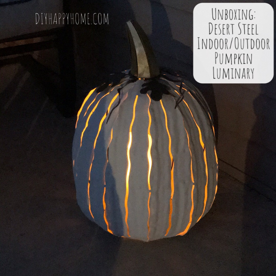 I am a big QVC watcher and shopper. When I saw the Desert Steel Pumpkin Luminary on QVC, I loved the look of them and wanted one for my front porch. While the price was fairly steep, I figured it was something I could get out year after year. I had trouble choosing between the white and the orange, but finally choose the white. And I chose the tall versus squatty size because I thought the tall would look more substantial. I would have bought the squatty one too if the price was a little lower.