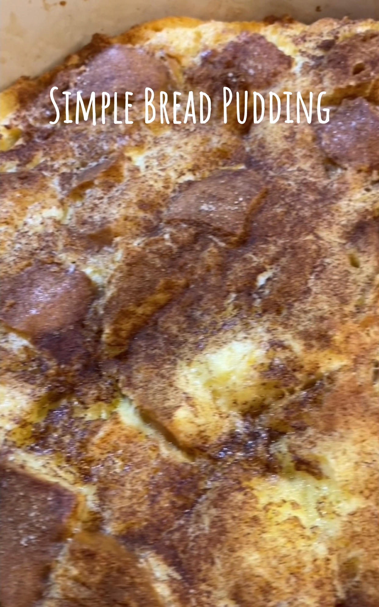 - Sprinkle top of bread pudding with cinnamon sugar and dot with butter.