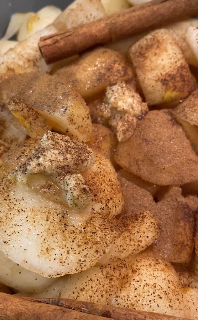 My boys and I picked 3 different varieties of pears at the orchard so I decided to make some delicious pear sauce with them in the slow cooker.