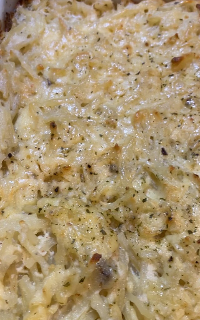 Frozen defrosted hash browns make this cheesy hash brown casserole so easy to whip up. This casserole has crispy edges and a creamy, cheesy, tangy flavor that is delish!