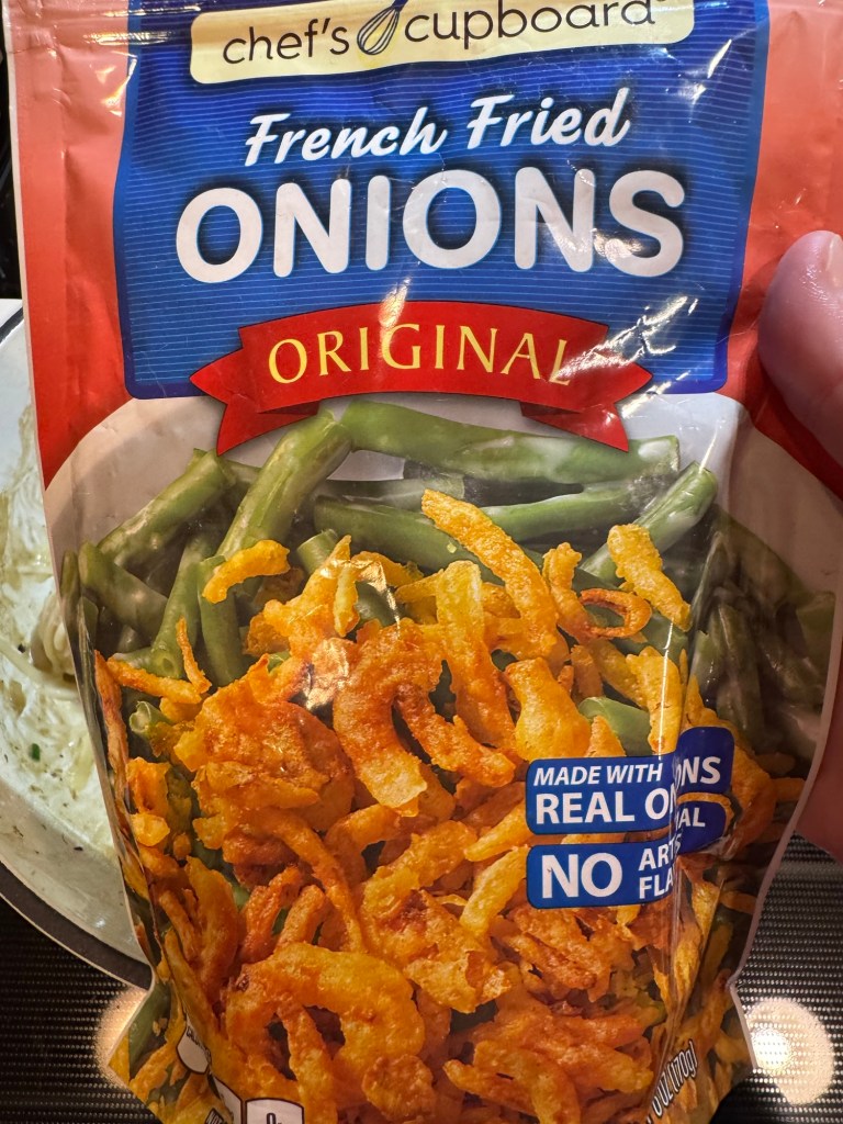 Topped with Swiss and Gruyère cheeses, French fried onions, and torn Italian bread make for a delicious topping that is reminiscent of French onion soup.