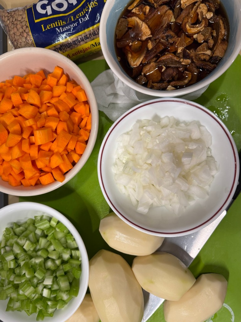 - 1 oz. package of dried Porcini Mushrooms, soaked in warm water for 30 minutes, then rinsed, drained, and chopped (or use fresh)